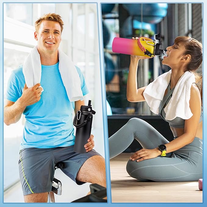 - SUPER DEAL COMBO - Buy one 40 oz insulated water bottle, get 9 accessories (2 x lids(BPA Free), 1 x paracord handle, 2 x straws(BPA Free), 1 x carrier bag, 1 x shoulder strap, 1 x protective silicone boot, 1 x straw brush). We offer LIFETIME WARRANTY and our friendly customer service is always here