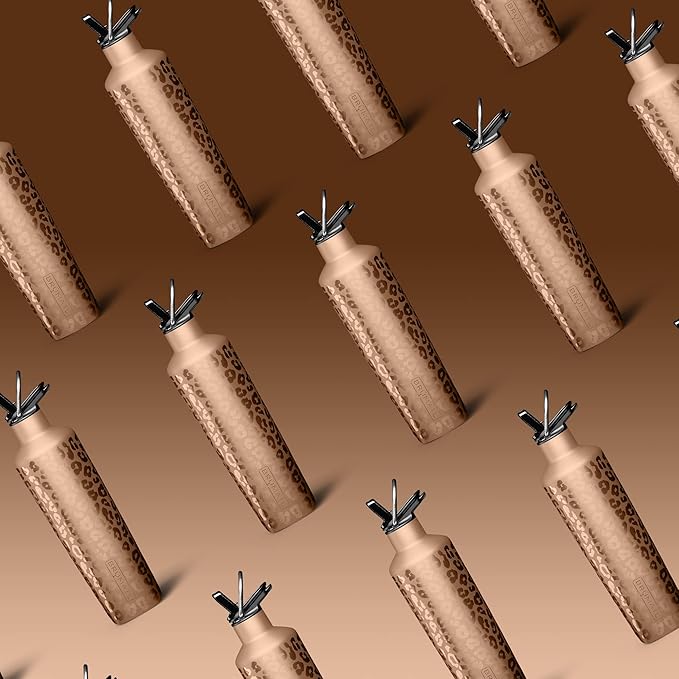 BrüMate ReHydration - 100% Leakproof 25oz Insulated Water Bottle with Straw - Stainless Steel Water Canteen (Rose Gold Leopard)