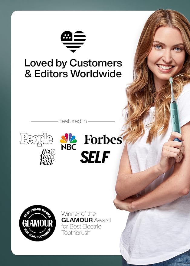 - What's in the Box – 1 Mint Green Metallic Smart Toothbrush, 8 DuPont brush heads with protective caps to keep your brush heads clean, 1 custom travel case, user manual, warranty card.