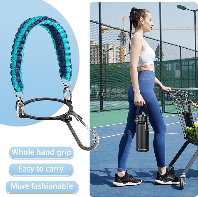 - Paracord Handles & Strap:32 oz water bottles Equipped with high quality colorful nylon braided Paracord Handles, bid farewell to the uncomfortable grip feeling, make the lifting more relaxed! Insulated 32 oz water bottle also comes with a 70.86 inches retractable strap, which can be worn directly on the body to free your hands and allow you to ride, climb, hike, rock climb and surf freely.