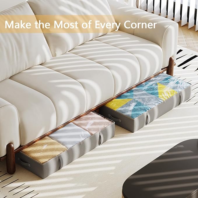 - Your room can be more organized - thanks to our low profile and STURDY underbed storage box, you can place it under the bed, in the closet, on top of the closet, even under the sofa, or any other small spaces in your home. You'll find it so helpful that your home will seem bigger!
