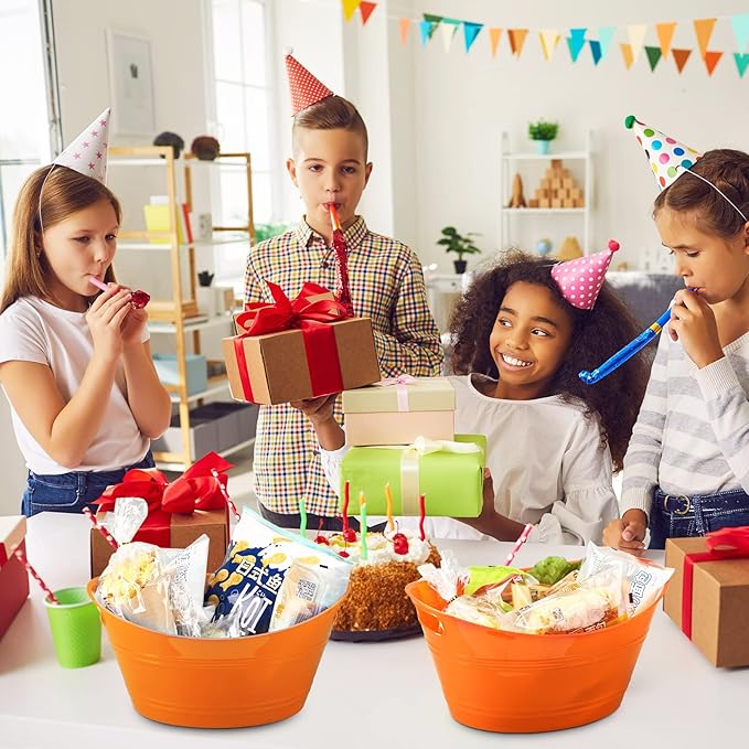6 Pieces Ice Buckets Bulk, Plastic Ice Buckets with Handles, Oval Storage Tub, Large Capacity Ice Drink Bucket for Party Bar Wine Beer Champagne Beverage Bottle Cooler (Orange,4.5 Liter)