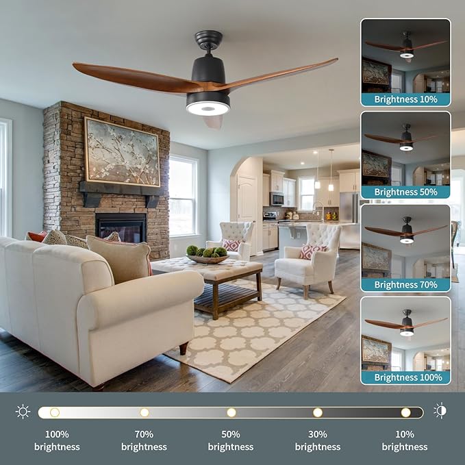 52 Inch Wood Ceiling Fan with RGB Dimming LED Light,with Music Bluetooth Speaker,Remote Control,3-Speed Regulation, Reversible Motor,Timing,for Living Room,Bedroom,Restaurant,Outdoor