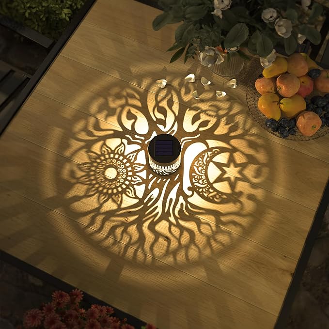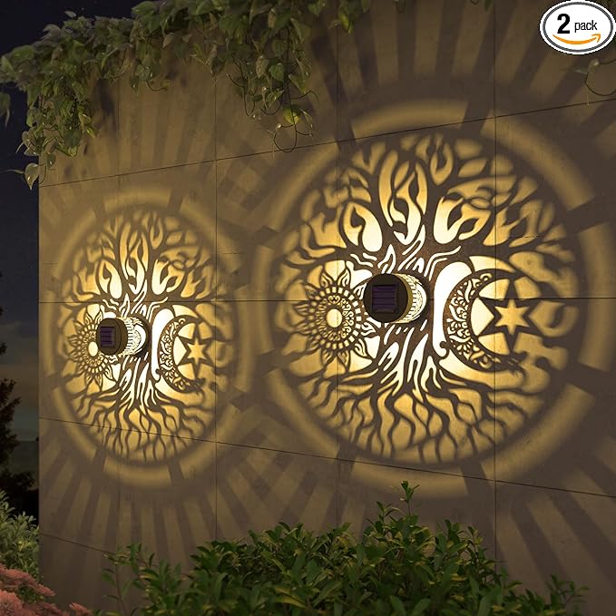 2 Pack Solar Fence Lights Metal Solar Powered Outdoor Wall Deck Step Lights Tree Theme Waterproof Fence Light for Garden Post Patio Backyard Yard Decor (Tree, 2 Pack)