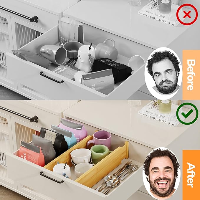 - NO SCRATCH: The BAMEOS cutlery dividers is equipped with anti-scratch pads, which can protect your drawer from being scratched, keeping your item safe enough