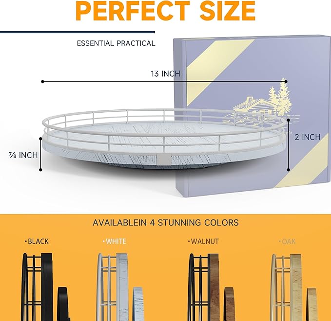 - ππππππ ππππππ:The base is large enough to hold a lot and heavy objects and successfully rotate. It is made of lovely oak wood that is strong with a sturdy metal rack to secure the items on the turntable. The turntable smoothly revolves all around making the items an easy reach. There is also included anti-slip pads on the bottom of the Lazy Susan, for extra surface protection.
