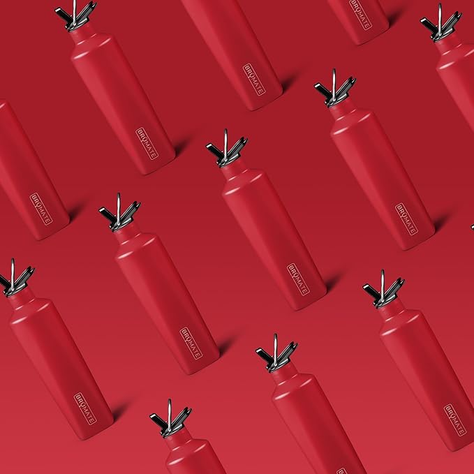 BrüMate ReHydration - 100% Leakproof 25oz Insulated Water Bottle with Straw - Stainless Steel Water Canteen (Ruby)