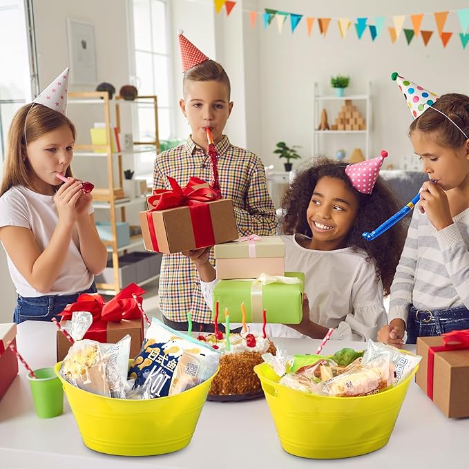 6 Pieces Ice Buckets Bulk, Plastic Ice Buckets with Handles, Oval Storage Tub, Large Capacity Ice Drink Bucket for Party Bar Wine Beer Champagne Beverage Bottle Cooler (Yellow,4.5 Liter)