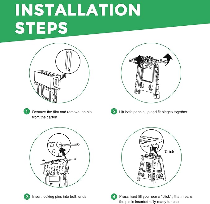 - 【Proper Use & Customer Service】Ensure the step stool is used on a dry, flat surface. Avoid exposing it to temperatures above 30℃ or below -5℃ for more than 5 hours. We pride ourselves on providing 24/7 customer service. For any questions, feel free to contact us.