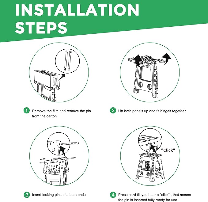 - 【High Load Capacity】Our Solid Strength folding step stool, equipped with a patented pin structure, delivers unparalleled stability. Reinforced with locking pins and sturdy hinges, the stool confidently supports up to 400lbs. Enjoy enhanced safety and stability for all your reaching needs.