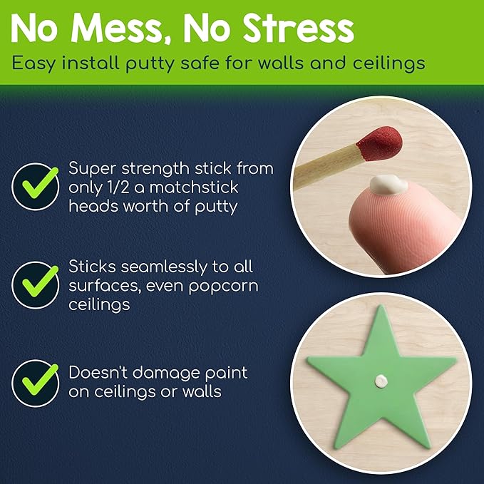 - Secure & Damage-Free Ceiling Stickers - We know how important your ceilings are, that's why our glow in the dark ceiling stickers are like magic – they stick securely without any harm to your walls or any residue left behind.