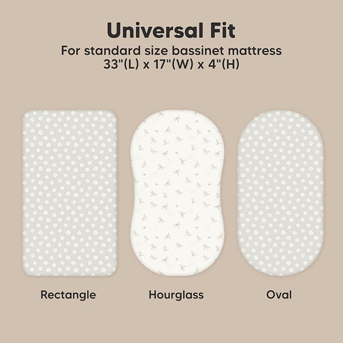 - 2-Pack Bassinet Fitted Sheets - KeaBabies Soothe Bassinet Mattress Sheets, sized at 33" x 17" with a depth of up to 4", provide a universal fit for all bassinet mattress pad types. They can be used as hourglass, oval, rectangle bassinet sheets.