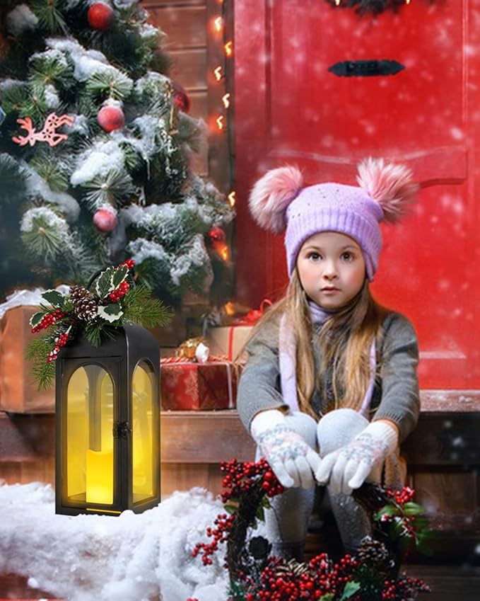 - Premium Craftsmanship: Crafted from high-quality materials, including metal construction and real glass panes, our lanterns exude durability and elegance. The festive red berry accents create a cozy holiday atmosphere
