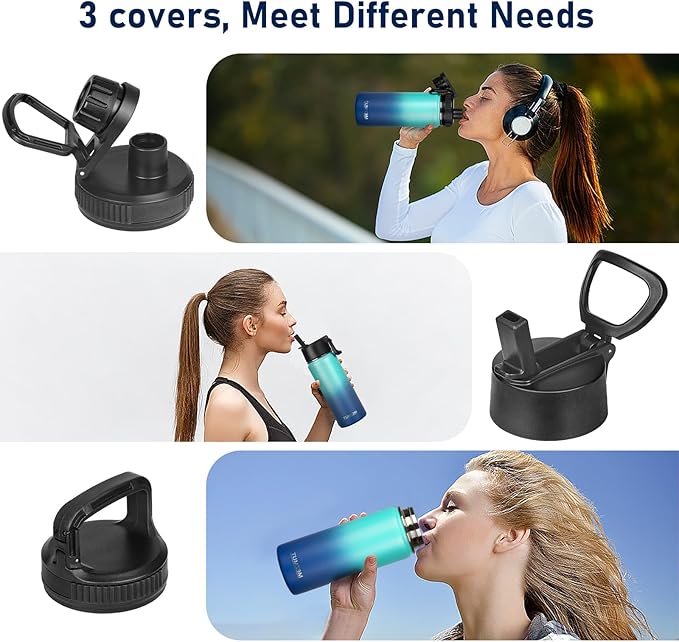 - âšăFulfills Your Needsă A high quality water bottles kids, 1 nozzle cap, 1 flip straw cap, 1 jug cap, 2 straws and 1 straw brush, 1 cup brush. Meet your every need, make drinking easier and more convenient. Each lid is sealable and 100% leak-proof, so you don't have to worry about getting it wet in your bag. The large opening of the kids thermos allows you to quickly fill it with ice or fruit and cleaning is easier.