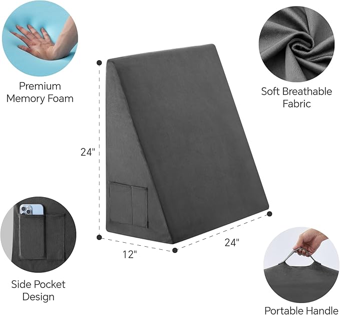 Bed Wedge Pillow for Sleeping, 12 Inch Memory Foam Wedge Pillow Post Surgery, Triangle Pillow Wedge, Elevated Support Pillows for Sleeping, Acid Reflux & Snoring - Removable Washable Cover