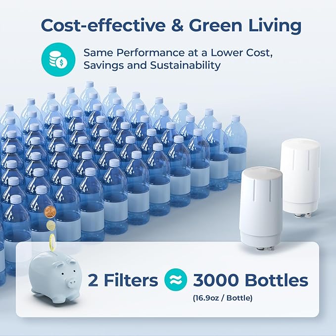 - Cost-effcctive: Same performance as the original filter but at a lower cost. Save up to 3000 single-use 16.9 oz plastic bottles