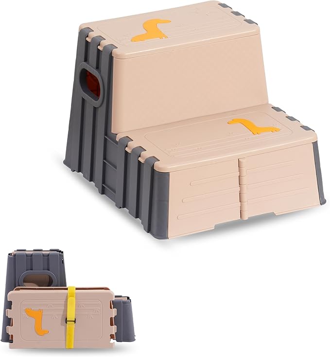 - 【Multi-Functional Assistance】This foldable kids step stool can be used with sit an d stand for bathroom toilet potty training, picking up objects from high places and toddler step stool, also a portable outdoor camping stool.
