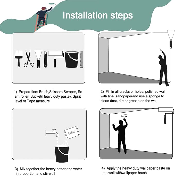 - Matters Need Attention:Our wall mural is not self-adhesive or peel and stick.You need to buy their own tools and heavy wallpaper adhesive, otherwise it can not be used