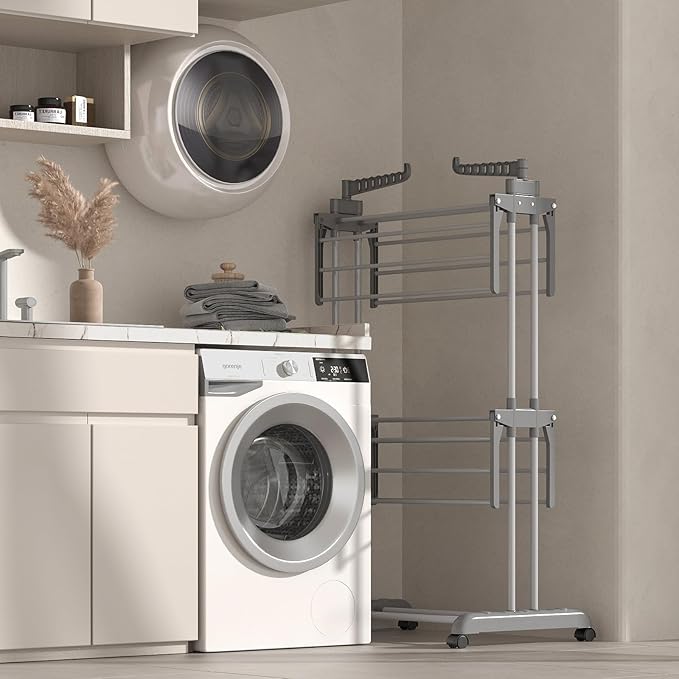- 🧦EASY TO MOVE👔 The clothes dryer rack is equipped with 4 wheels that can be rotated 360 degrees, making it easy to move it anywhere for drying. Two of the wheels are equipped with brakes to prevent the clothes from moving while drying.
