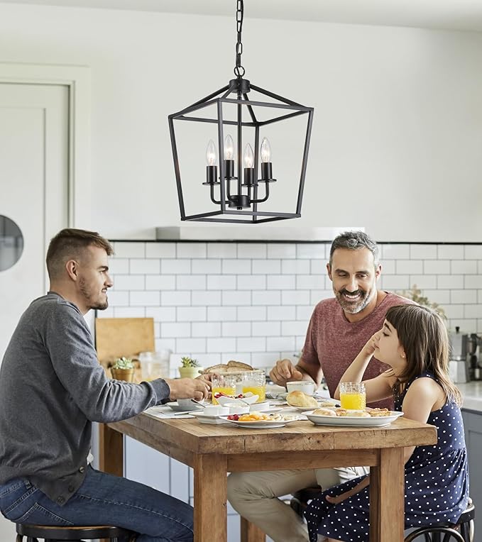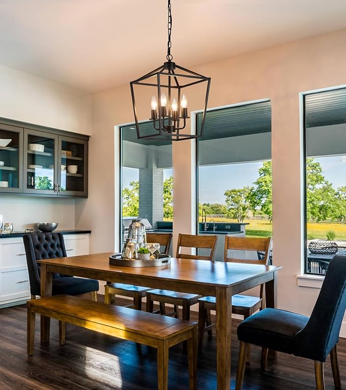 - Easy to Assembly:The kitchen table lantern pendant light is easy to install,this black farmhouse chandelier with adjustable chain,you can adjust the length of the chain according to the height you want also with detailed installtion instructions.It can be install for a sloped,flat,vaulted ceilings.