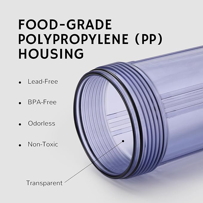 - Premium Construction: Crafted with premium quality to meet NSF standards, reinforced polypropylene housing ensures strength and chemical resistance to provide you with safe and healthy filtered water.