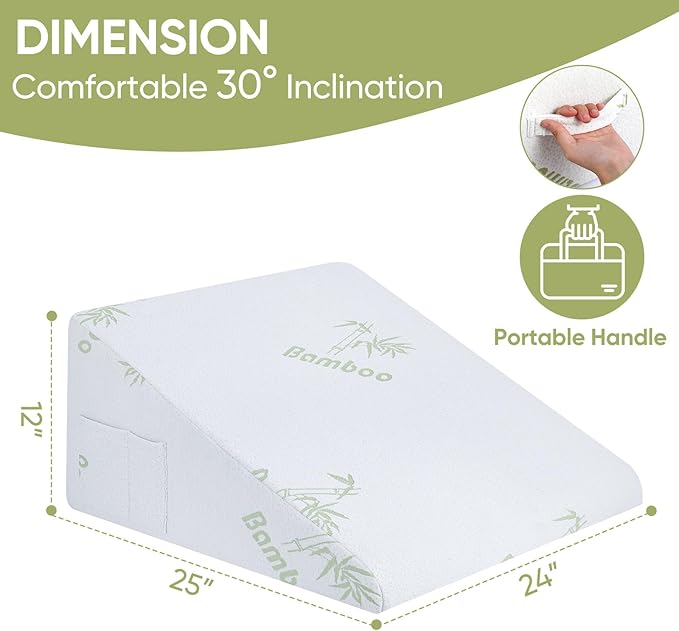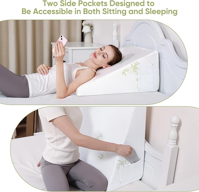 - 2 Pockets & Portable Design: Our triangle pillow wedge features two built-in pockets, ideal for storing remote controls, phones, or glasses. Additionally, its portable handle allows you to take it with you wherever you go for on-the-go comfort and support.