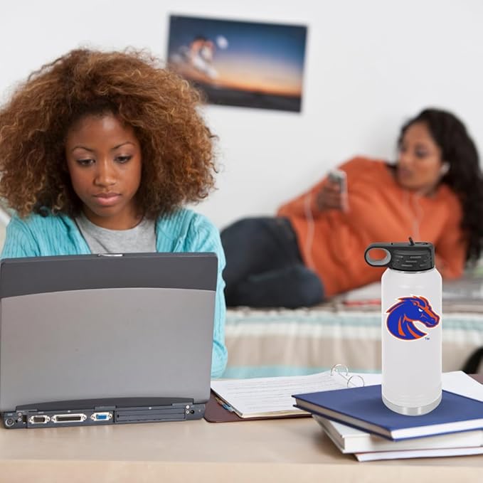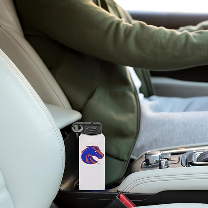 Boise State University 32oz Stainless Steel Double Walled White Beverage Bottle with Flip Straw Spout - College Gear for Playoff Season – For Office, Home or Auto – Show your Bronco Nation Pride