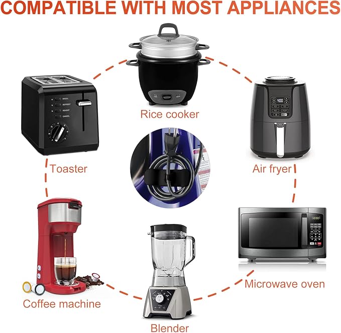 - PREMIUM MATERIAL: Each appliance cord organizer stick on is made of high quality rubber, durable and deformation resistant. The sticky adhesive pad is non-toxic, odorless, and will not leave marks on kitchen appliance surface