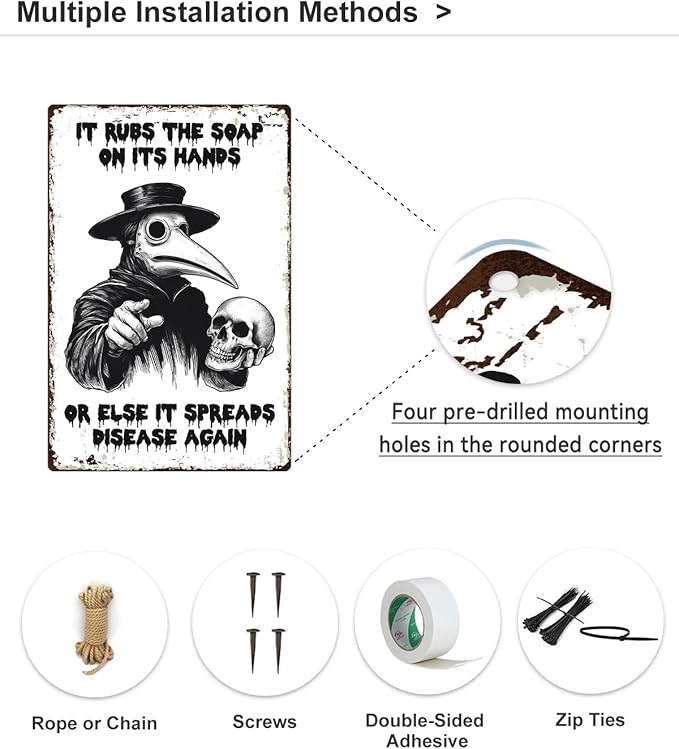 ALKB Halloween Bathroom Decor 8 x 12 Inch - Goth Plague Doctor Metal Tin Sign,Gothic Lovers Gifts,IT RUBS THE SOAP ON ITS HANDS