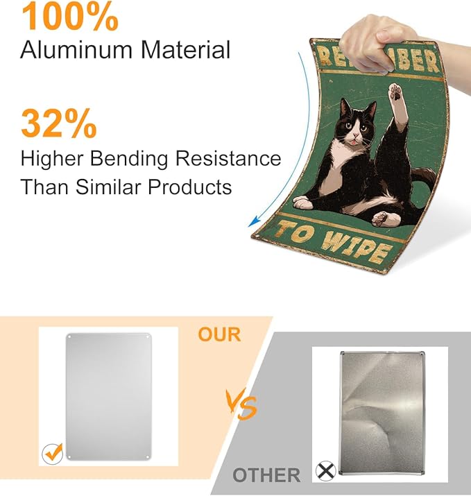 ALKB Bathroom Tuxedo Cat Sign - Remember to Wipe - Cat Lover Gift 8x12 Inch Vintage Metal Sign for Bathroom Decorations