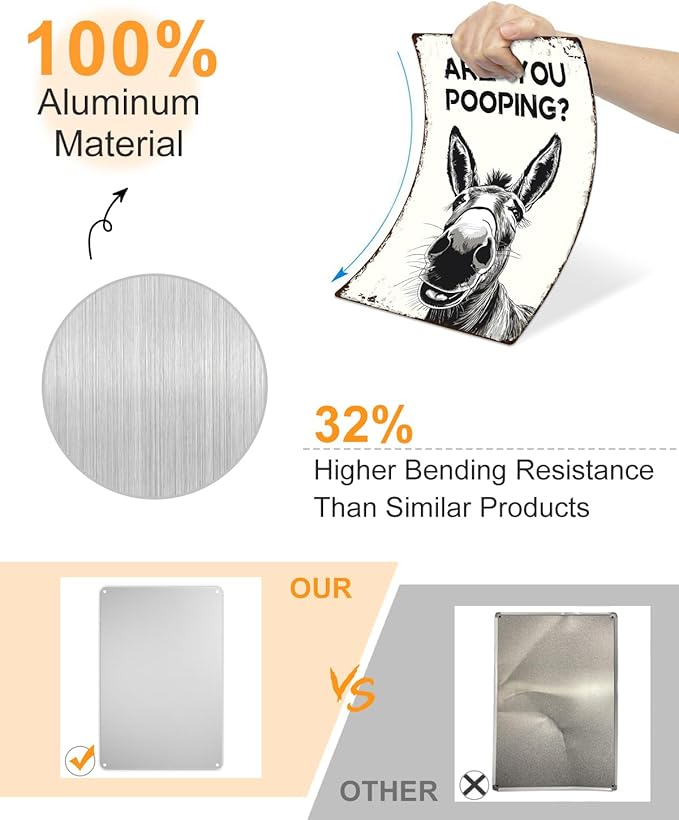 ALKB Funny Donkey Are You Pooping Metal Signs Vintage Farmhouse Bathroom Wall Decor Donkey Lovers Gift 8 x 12 Inch