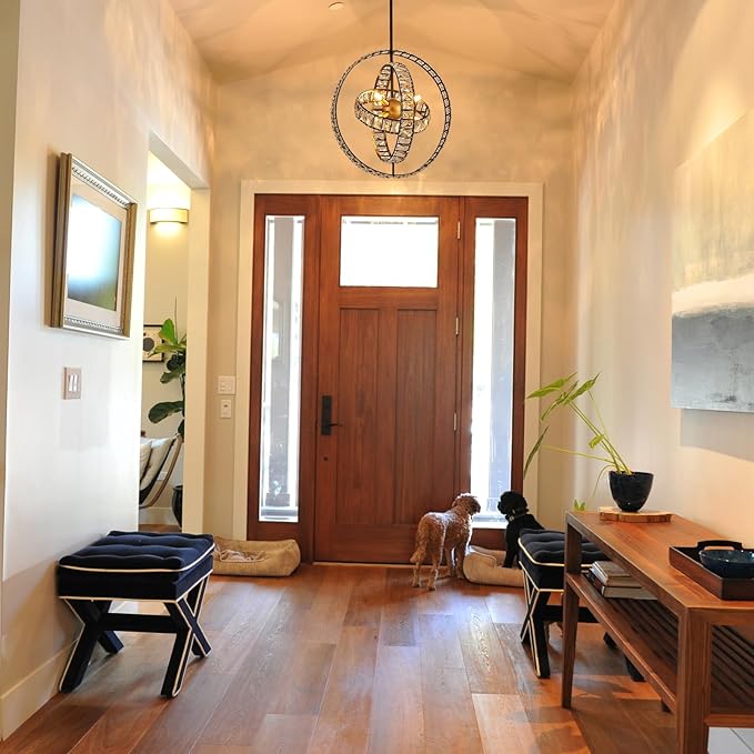 - 【Height Adjustable】This black gold crystal globe chandelier is adaptable for sloped, hanging and flat ceiling. Fixture Dimensions: 18.5" high x 18.11" wide. The hanging pole is adjustable by 2 rods (11.81 inches each). The total length of the hanging pole is 23.62 inches(60cm).