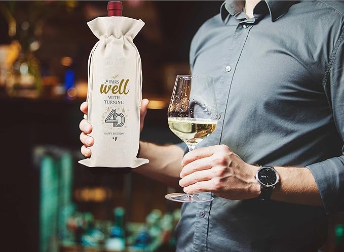 40th Birthday Wine Bag,Pairs Well With Turning 40 Happy Birthday,40th Gift Birthday Planning Gift,40th Gift Birthday Party,Birthday Decorations Wine Bag,Reusable Wine Bags With Drawstring,L15