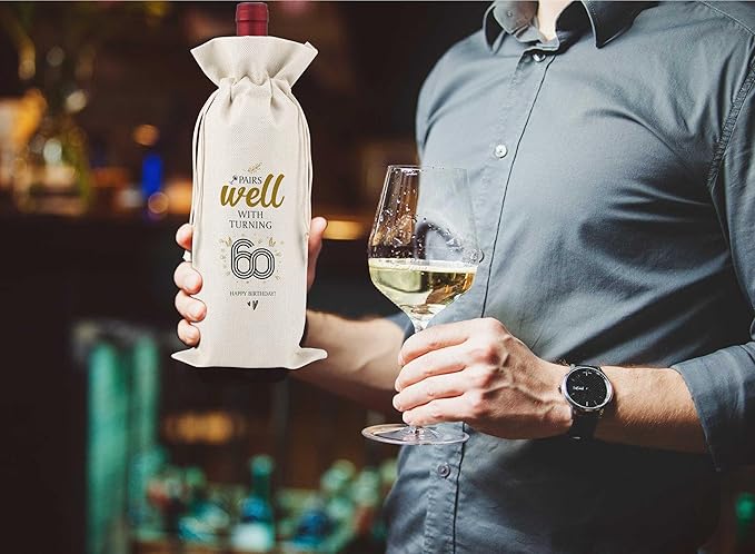 60th Birthday Wine Bag,Pairs Well With Turning 60 Happy Birthday,60th Gift Birthday Planning Gift,60th Gift Birthday Party,Birthday Decorations Wine Bag,Reusable Wine Bags With Drawstring,L16