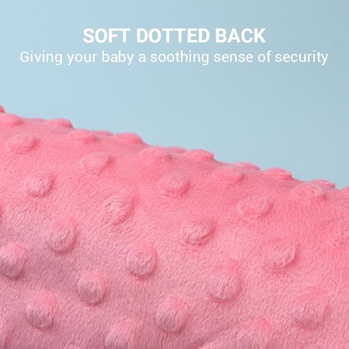 - Cute Design:Lovely pattern,comfort blanket with 12 tags,10''X10'',dotted backing,giving your baby a soothing sense of security .