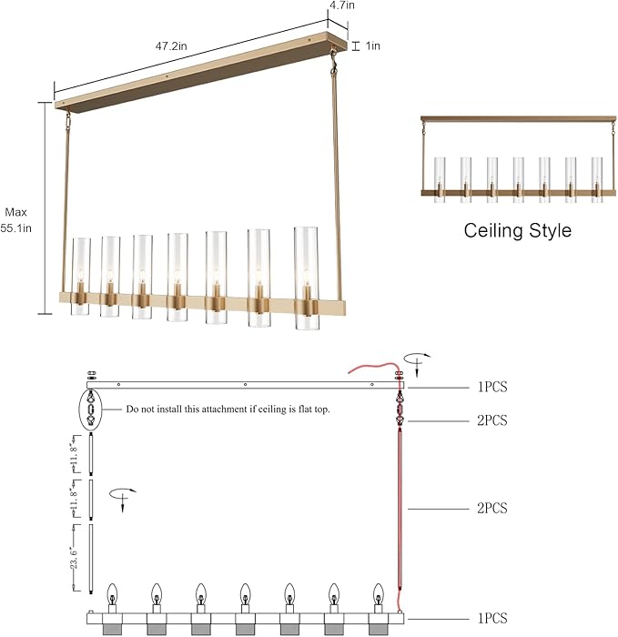 - EASY INSTALLATION - 47'' kitchen chandelier linear light fixture comes with multiple stems for simple installation and adjustable heights up to 51" high. With all necessary hardware included, this island lights for kitchen is quick and easy to install with simple instructions provided by Untrammelife.