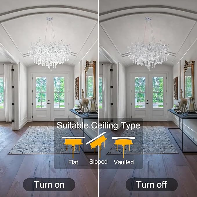 - 【Recommended Space】This crystal chandelier is great for living room, dining room, entryway, foyer, villa, farmhouse, girls bedroom, kitchen island. It is a very great chandeliers decoration for Christmas, new years and daily.