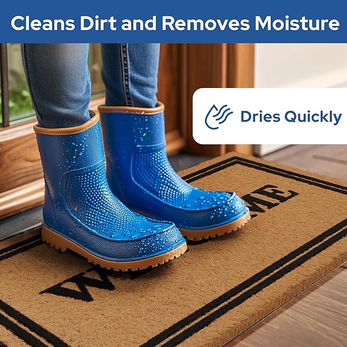 - Versatile - Our Welcome doormat outdoor entrances is not only perfect for patios, but also makes a great welcome mat for outdoor events or camping trips. Its durable construction is perfect for cleaning dirt and debris from shoes, and the all-weather coir fibers dry quickly. Use it to welcome guests to your home, cabin, or RV.