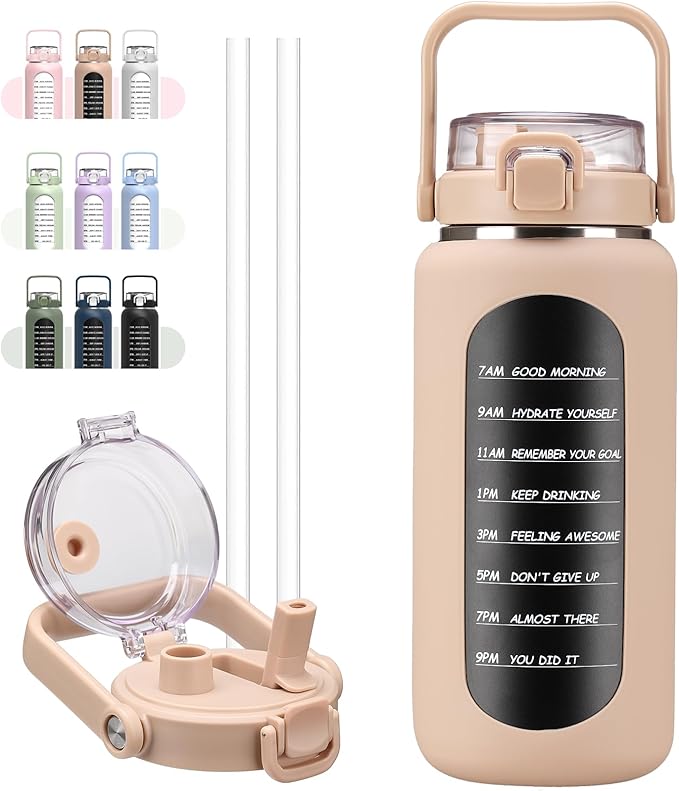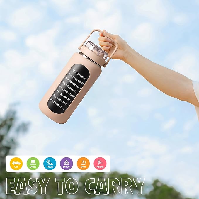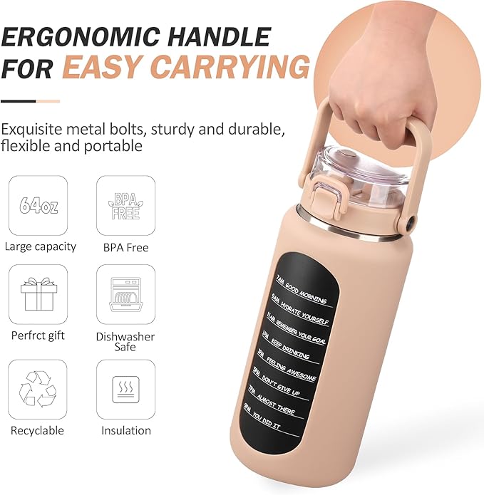 - 【ALL-DAY HYDRATION】 The 64oz/half-gallon water bottle with motivational quotes by hour keep you hydrated throughout the day and your daily water intake on track at home, gym, or while you travel on the road. A very good helper to remind you of hydration goals everyday!