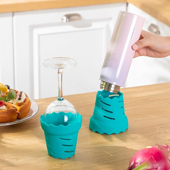 - Food-Grade Silicone Material - Crafted from high-quality thick silicone, this water cups dryer is soft and odor-free, ensuring that it won’t scratch or cause damage to the body or interior of your drinkware. Its gentle yet secure grip cradles each cup with care, protecting your glassware from harm.