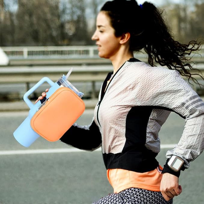 1 Pack Water Bottle Pouch Fit for Stanley Quencher Adventure 40oz Tumbler, Gym Water Bottle Pouch Running Water Bottle Handheld Caddy Compatible With Stanley Tumbler - Orange