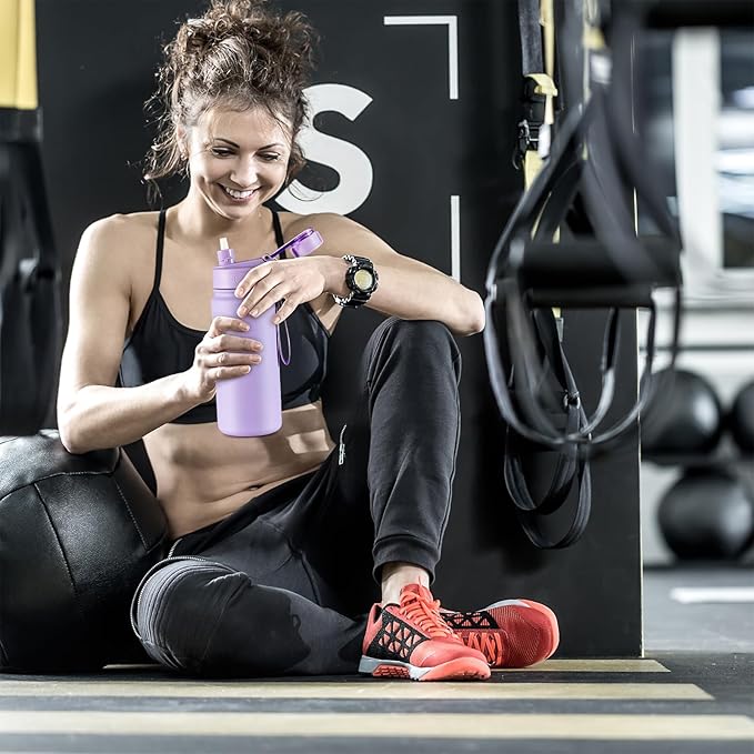 - 【Food grade material - BPA free】The materials we use for this sports water bottle are food grade, 316 stainless steel for the interior of the bottle, pp (polypropylene) for the cap and spout, and silicone for the leak-proof gasket and straw, making this metal water bottle BPA-free. so: whether you're at the gym, playing sports, or traveling, you can enjoy sipping moments with peace of mind!