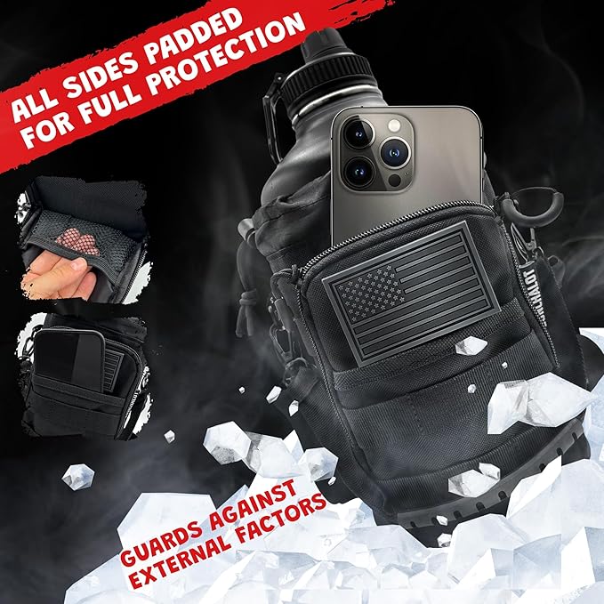 - TACTICAL BAG FOR EASY CARRYING: Bottle holder includes removable shoulder strap and removable rubberized handle; Water resistant dustproof bag has MOLLE webbing attachments and a big pocket for a phone, hidden mesh pocket for money, cards, and keys