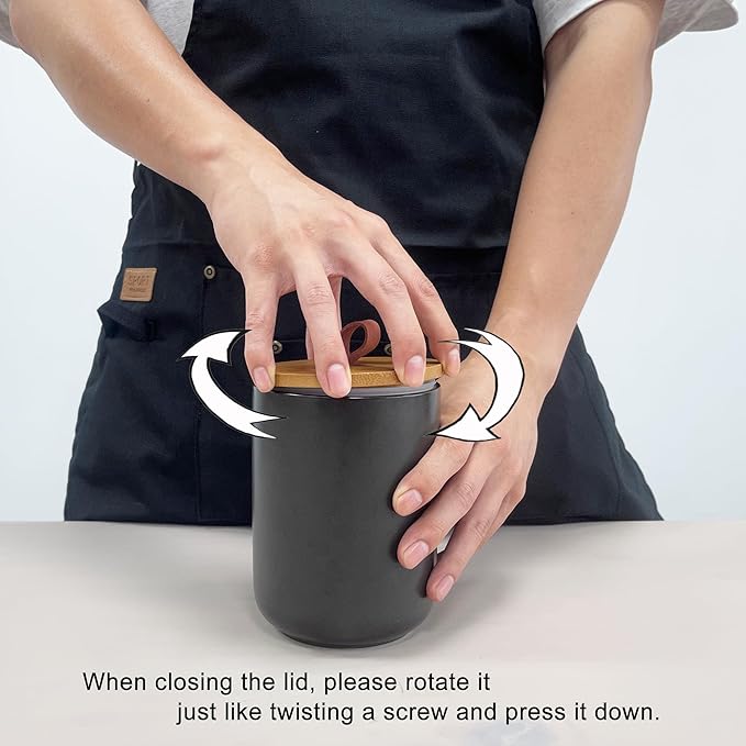 - Easy-to-Use Design - Screw the lid on tightly like a screw to remove air and improve sealing. Wide mouth allows for easy access to contents. The smooth glaze finish simplifies cleaning, and the ceramic jars are dishwasher safe for hassle-free maintenance. Hand washing is recommended for the bamboo lids.