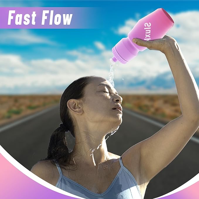- đźš´Excellent Material: The SLUXKE cycling water bottle uses food-grade PP5 resin material, which is a high-quality material that is anti-erosion and oil-resistant. 100% BPA-free, non-toxic, and odorless for safe drinking. the 720ml capacity water bottle is thick, durable, and reusable, A perfect squeeze water bottle for bike cages.
