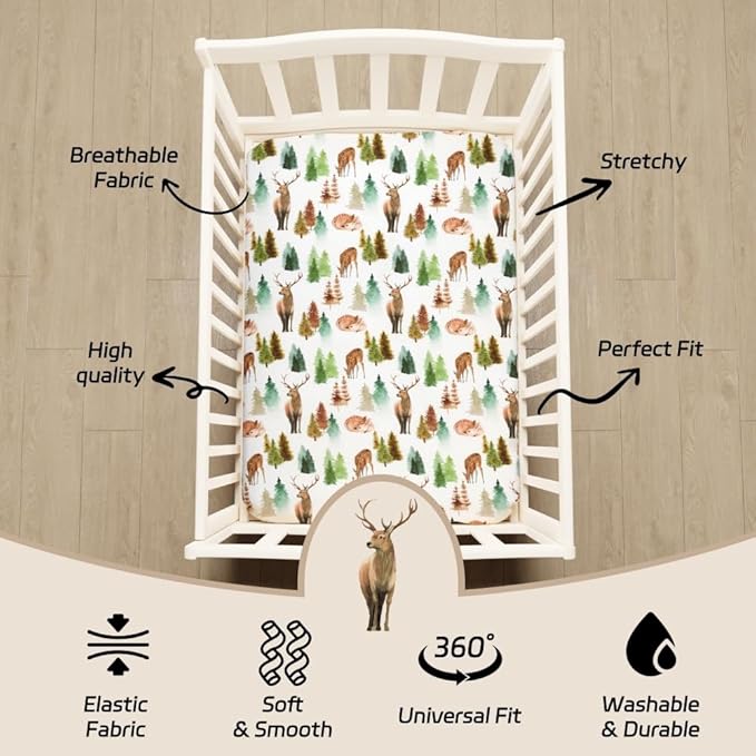 - HIGH QUALITY WITH UNIQUE WOODLAND DESGINED: Bring the cozy look reminiscent of forest design into the little baby’s room with woodland crib sheets. Made from soft material, the crib sheets will not fade with bright color.