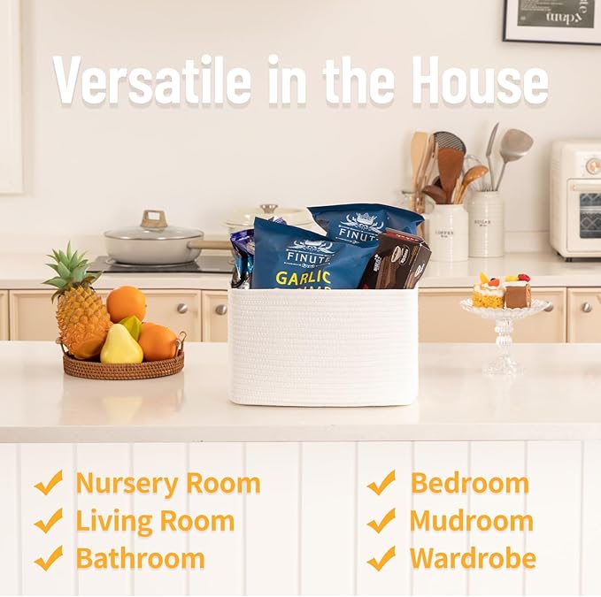 - Elegant: SIXDOVE Cotton Rope Storage Basket. The woven design of these baskets adds a touch of rustic charm to any room decor, making them a perfect addition to your living room, bedroom, or nursery. SIXDOVE rope shelf basket looks good in your shelves, closet or next to your bed and is an essential item for your daily storage. This cube rope storage basket enhances any room or décor at your home