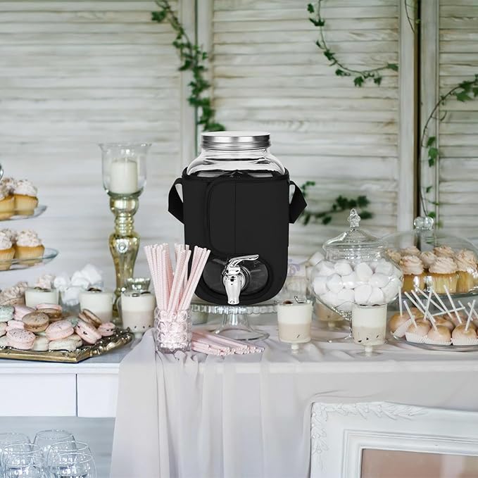 - đMachine washable: This Beverage Dispenser Sleeve is made of premium quality neoprene and are built to last for years, each sleeve was hand-made carefully with reinforced stitching; premium quality fabric is a bit stretchable, easy to fit 1 Gallon Glass Drink Dispenser.