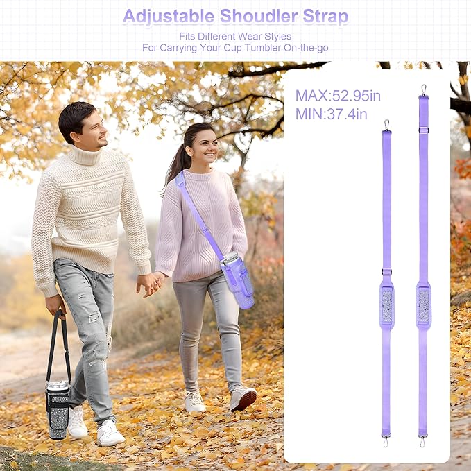 • This Stanley Quencher 40 oz Cup Sleeve comes with adimond removable and adjustable shoulder strap, the shoulder strap can be easily adjusted between 28-53inch to fit a wide range of body shapes. It can hand carrying and crossbody.This water bottle holder designed with two pocket designs that provide plenty of room for all your personal belongings like phones, cash, cards,keys..