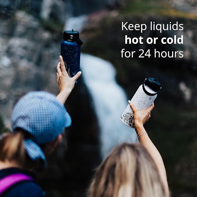 - 32 OZ METAL INSULATED WATER BOTTLES: the double vacuum sealed design enables the bottle to keep water hot or cold for up to 24 hours just like a thermos, great for hot drinks on cold days or cool drinks in the warm season.